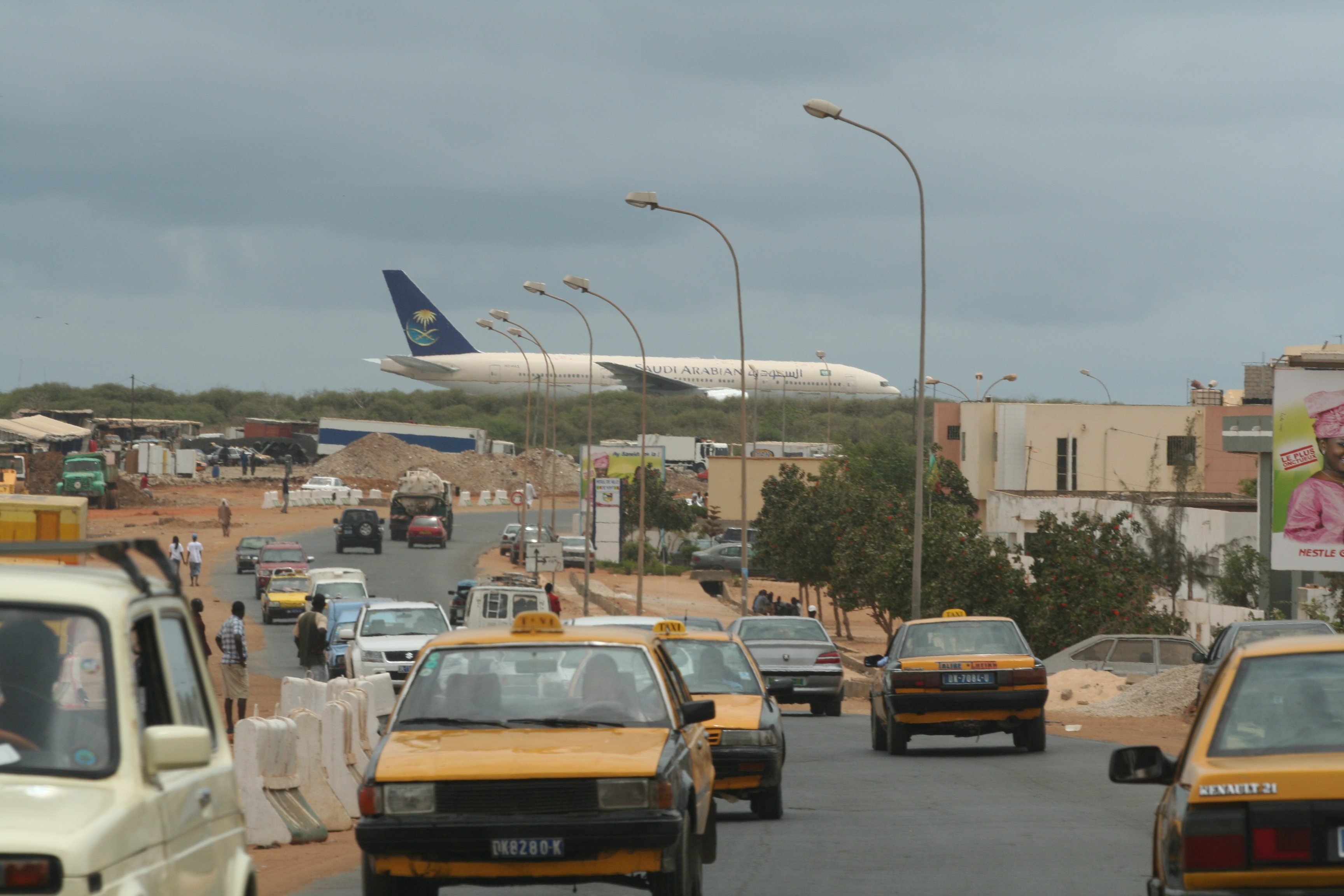 3. Die Strasse ist nicht nur ein Ort für den Verkehr oder die Verkehrsstaus, nein sie ist auch gleichzeitig ein Markt. Je nach Jahreszeit und Ankunft der Container-Schiffe findet man Weihnachtsschmuck (Weihnachten); Taschentücher (sprich Moussoirs); Lenkrad-Überzüge und Radkappen (das ganze Jahr); das Konterfei des „Serigne Touba“ (Magal); Telefonkarten (ganzes Jahr); Datteln (Ramadan); die neueste CD von Youssou Ndour (1x im Jahr); Schafe (Tabaski); Unterwäsche (schwierig auszuprobieren am Platz); usw.