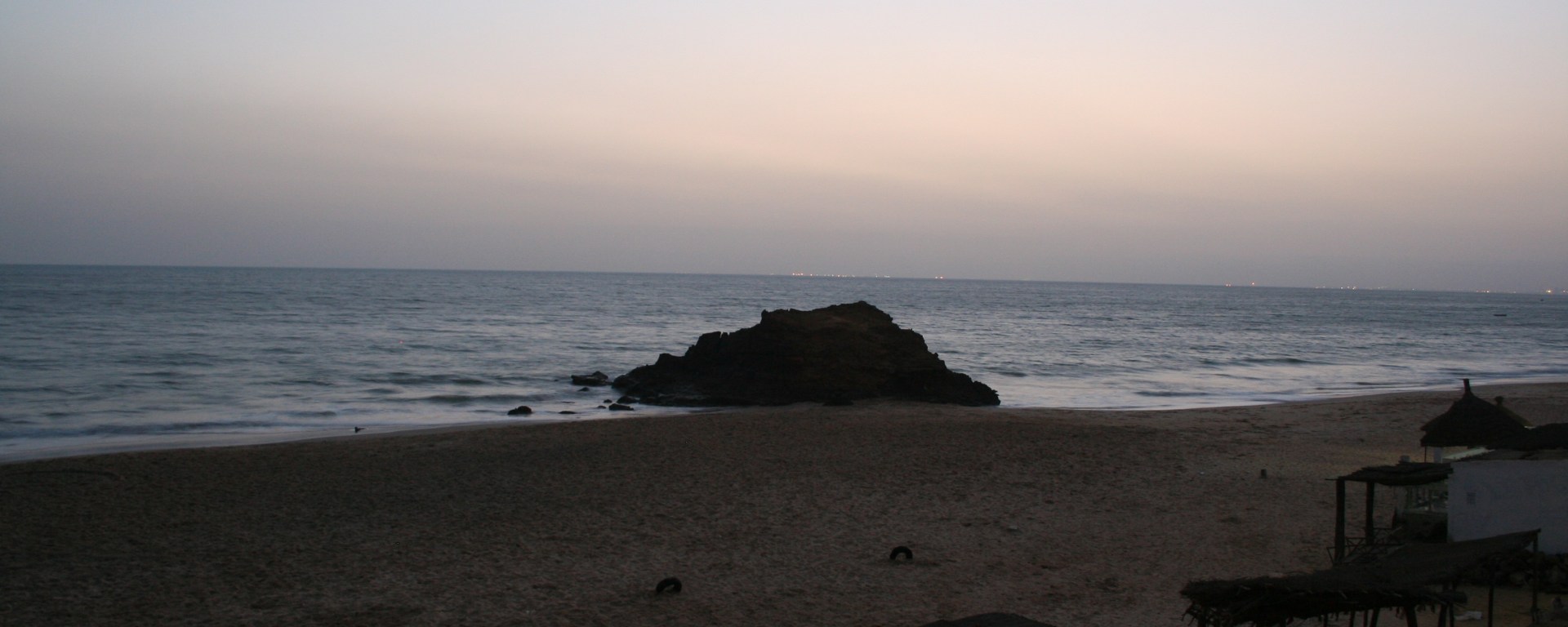 Gesagt, gemacht. Um 18h30 waren wir am entsprechenden Strand. Abou hatte seine Instrumente mitgenommen, da die Musiker trommeln wollten. Der Strand war noch voller Leute, die den Tag am Meer verbracht hatten. Aber leider keine Spur von unseren Freunden. Wir suchten den Strand ab. Da kam Gaby auf uns zu. Er trug sein Ballaphon auf dem Rücken. Noch niemand da? Nochmals suchten wir den Stand ab, der sich langsam zu leeren begann. Nichts, niemand zu sehen. Wir setzten uns in die kleinen Bar am Stand. Dort begannen Abou und Gaby auf ihren Instrumenten zu spielen. Bald schon kam ein weiterer junger Musiker hinzu. Gemütlich, mit einem gekühlten Getränk in der Bar sitzend, genoss ich dieses spontane Konzert. Ballaphon, Bolong, Bass und Gesang. Durch die Musik angelockt begann sich die Bar langsam zu füllen. Die Leute begannen zu singen, zu klatschen und zu tanzen. Der Besitzer der Bar spendierte den Musikern einen Drink und ermunterte sie, weiter zu spielen. Ein kleines Fest entstand spontan. Von unseren Freunden keine Spur…..