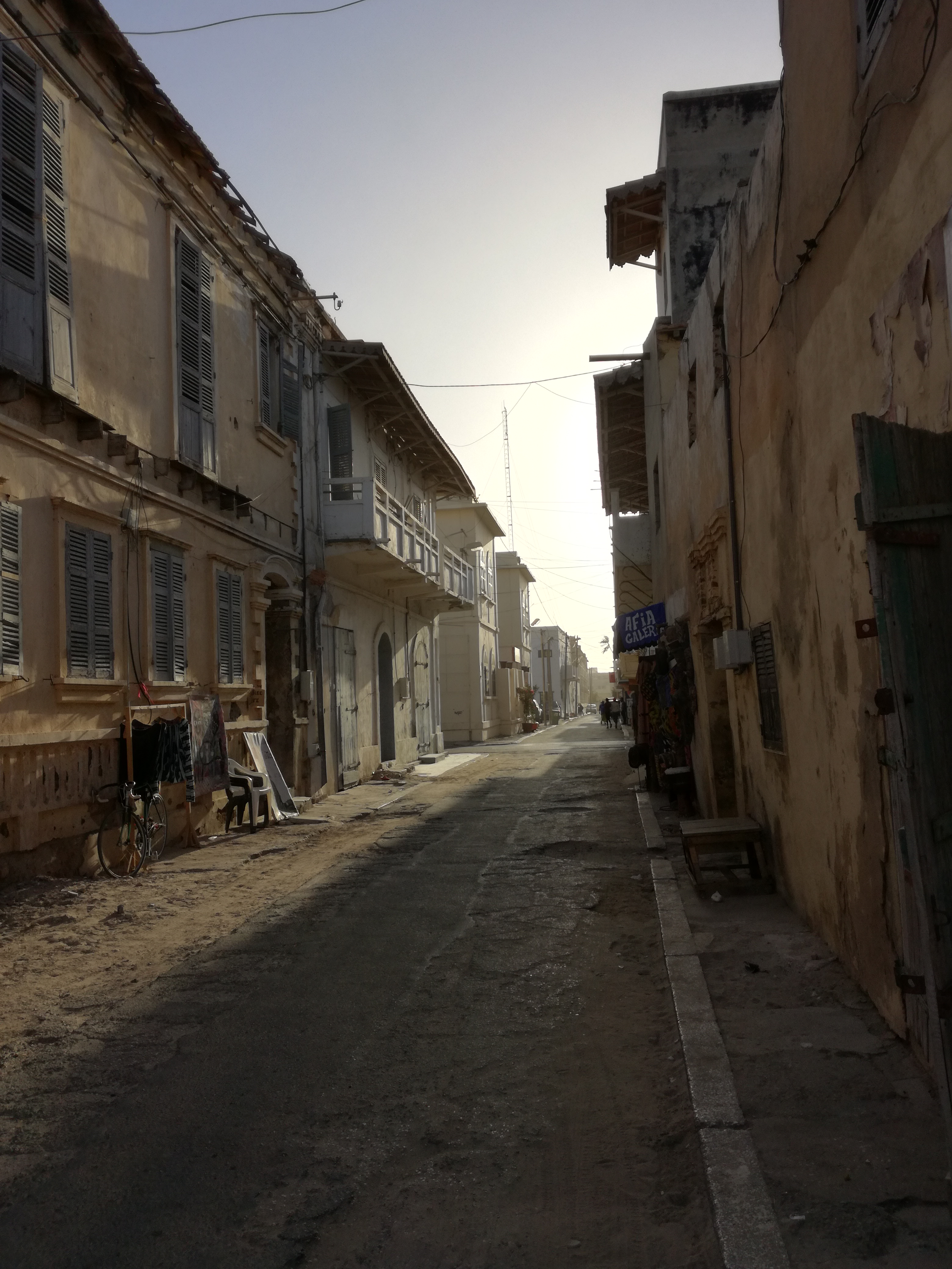 Touristisch interessant ist vor allem die Altstadt auf der Insel in der Flussmitte. Es sind dort viele altehrwürdige Kolonialbauten zu bewundern. Welch ein Genuss, durch die vielen kleinen Gassen zu schlendern und diese wunderschönen Häuser zu bewundern. Viele der Häuser wurden inzwischen renoviert, dienen heute als Hotels, oder als Privathäuser, in denen zur Strasse hingwandt viele kleinere und grössere Geschäfte oder Produktionsstädten/Künstlerateliers besucht werden können. Dominant sind sicher die vielen Souvenier-Shops, welche die Touristen mit einer reichen Auswahl von Kunsthandwerk anlocken. Doch gibt es auch das Atelier mit dem Laden der Modedisignerin Rama Diaw https://www.meltingbook.com/rama-diaw-plus-quune-marque-pont-entre-lafrique-loccident/ , welche vor allem bei den mordernen Frauen jeder Couleur mit ihren Modellen gut ankommt. Und es gibt das Atelier Tess von Mai Diop http://www.tesss.net/album/ , welche in ihrer Werkstadt einen grossen, wunderschönen Webstuhl stehen hat und dort bezaubernde Stoffe nach alten, traditionellen Webmustern aus ganz Westafrika herstellt. Die Weberei gilt gleichzeitig auch als Laden, in welchem ihre wunderschönen Werke ausgestellt und zum Verkauf angeboten werden. Bei einem Besuch erzählt Mai gerne auch etwas aus der alten Tradition der Weber in Westafrika.