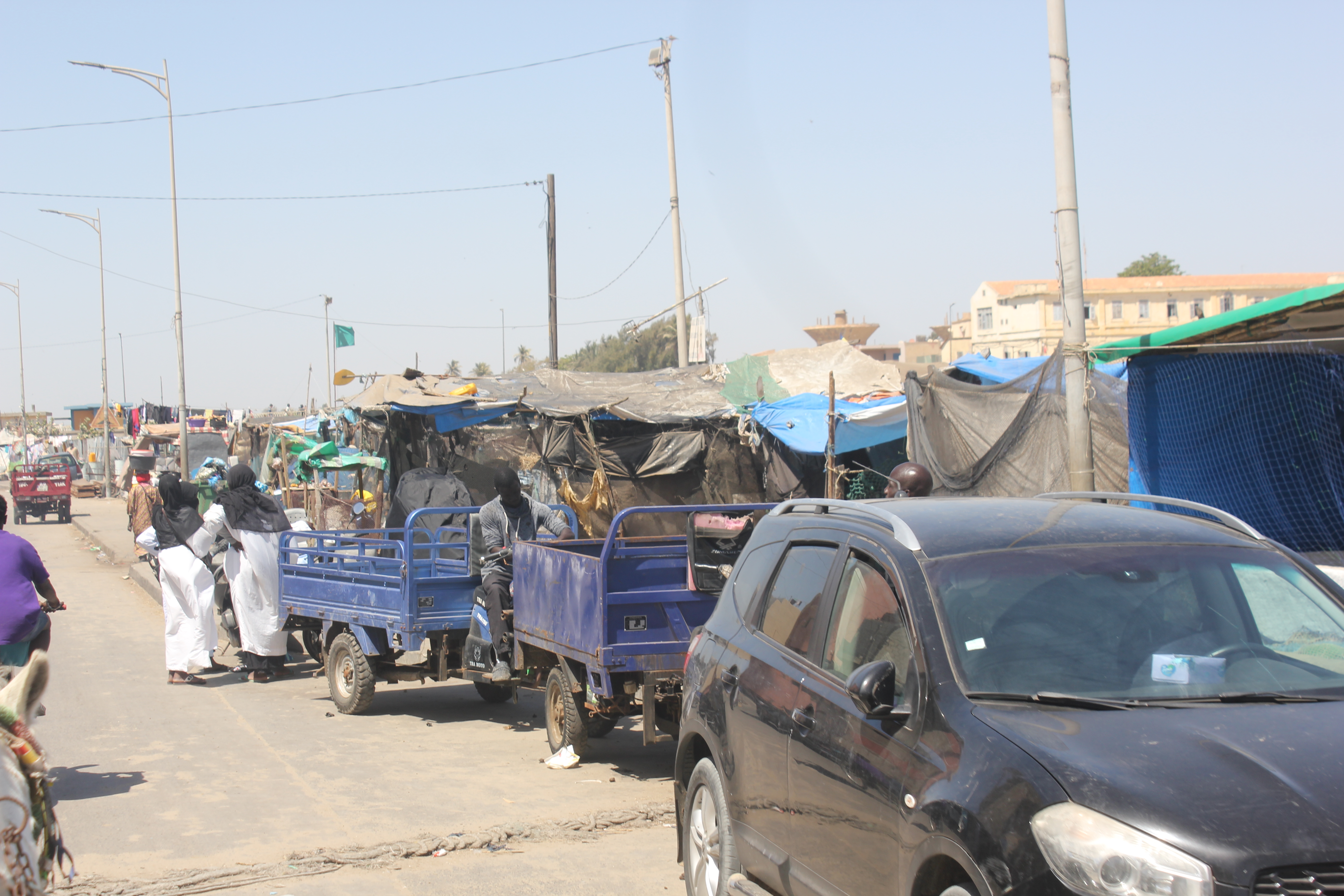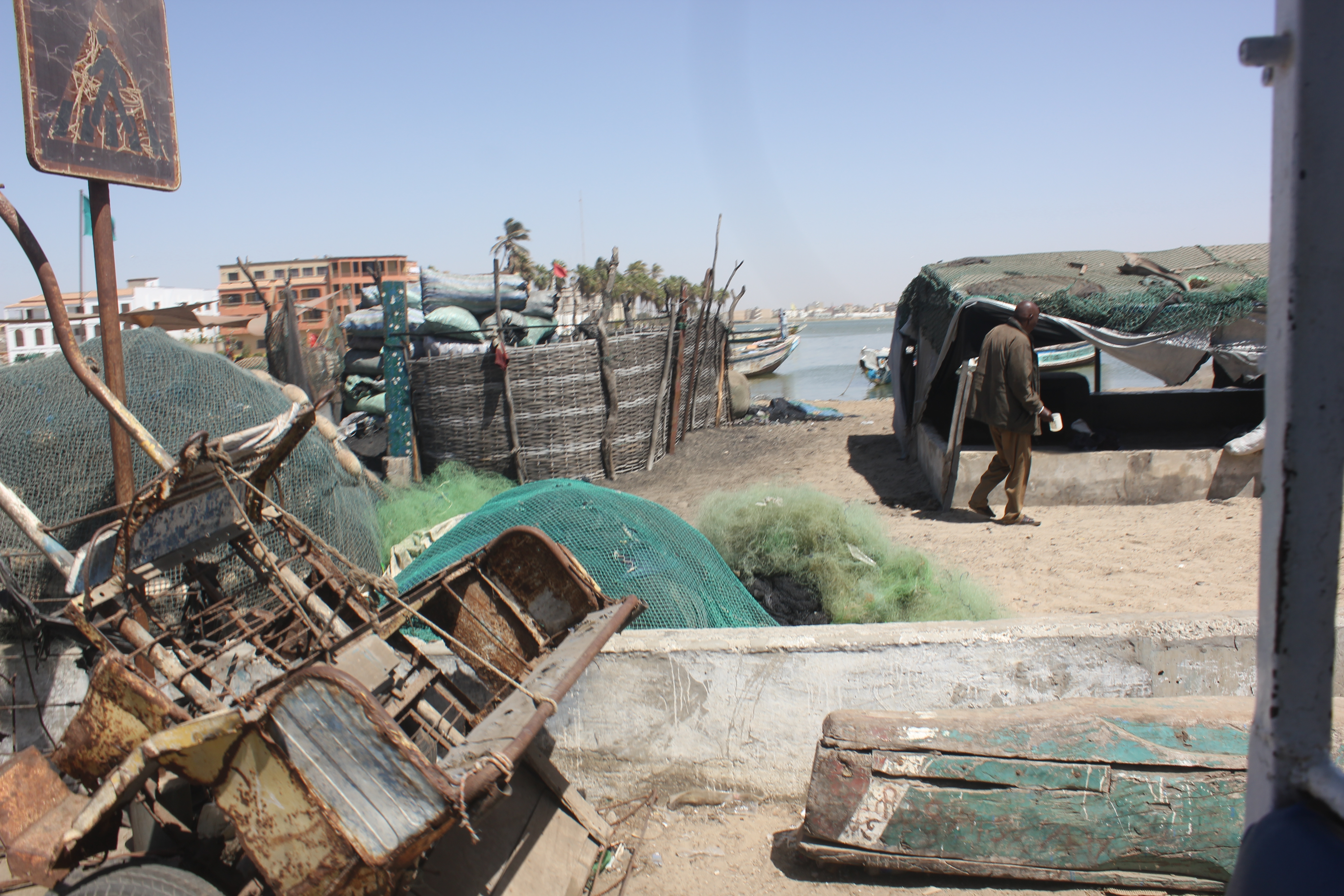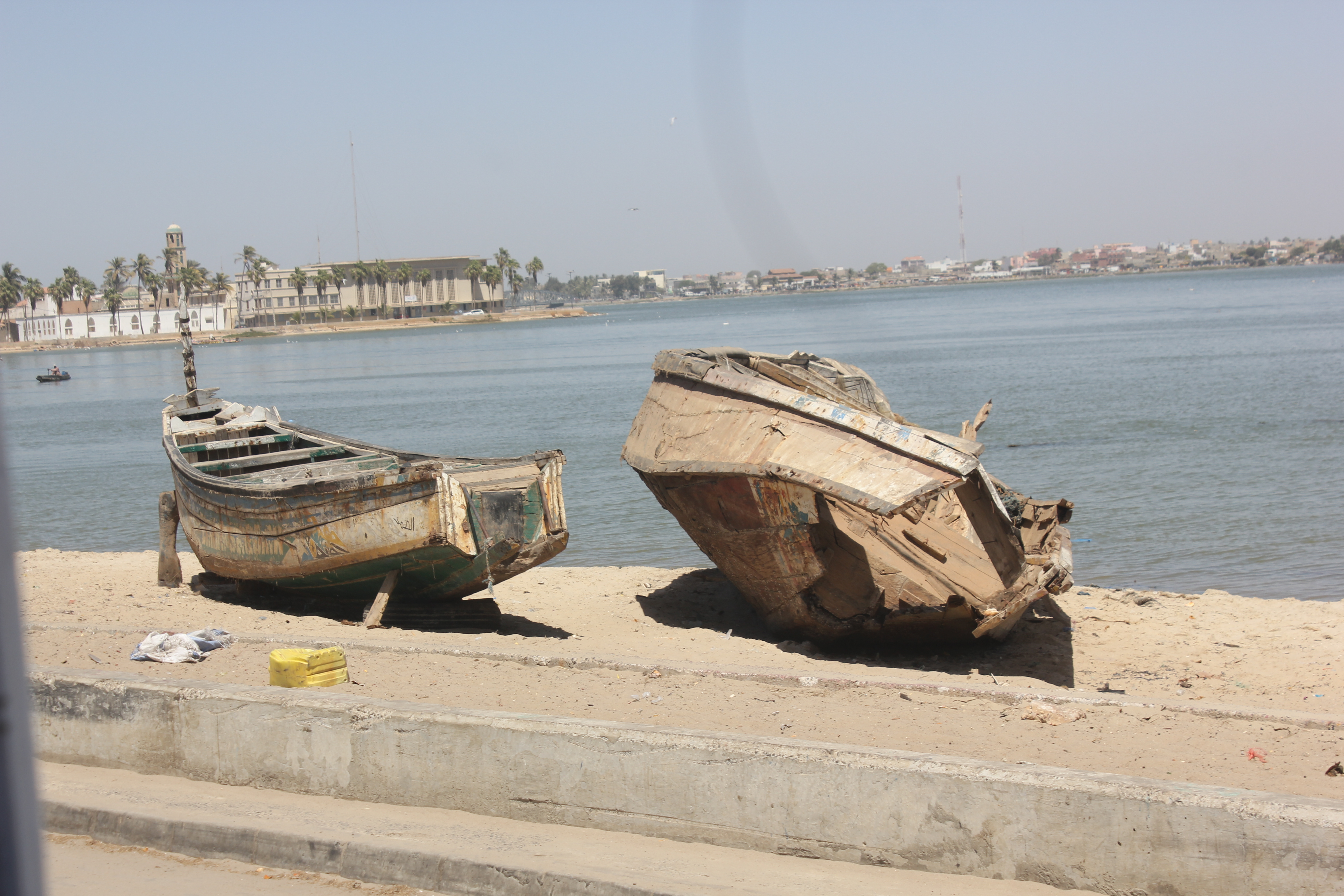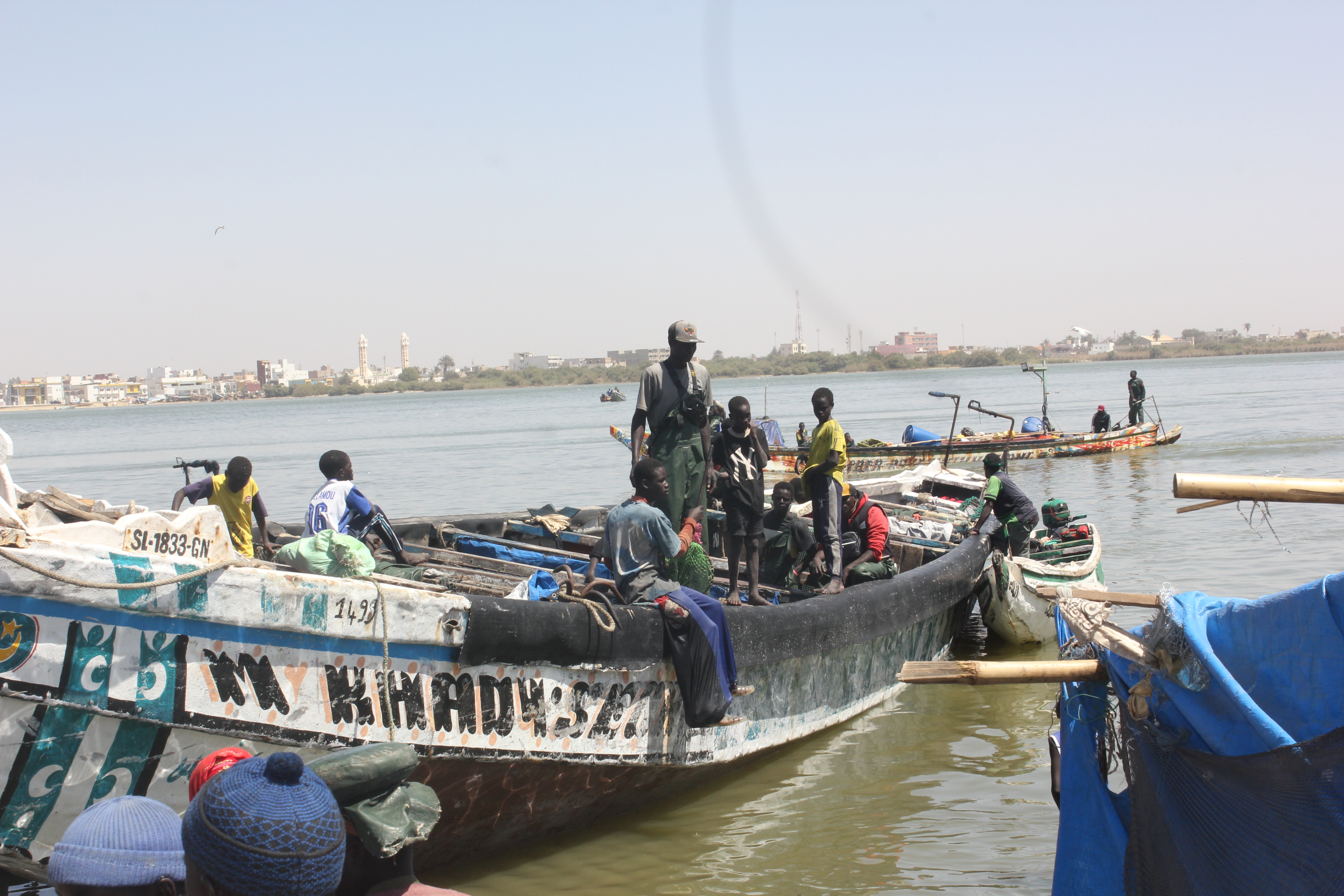 Ein Anziehungspunkt ist auch das Fischerdorf „Guet Ndar“ welches sich gegenüber der Altstadt-Insel, durch 2 Brücken verbunden auf der Landzunge „Langue de Barbarie“ befindet. Die Landzunge wird auf der Inselseite vom Fluss Senegal und auf der anderen Seite vom Meer begrenzt, auf welchem die Bewohner des Fischerdorfes mit Fischfang ihr täglich Brot verdienen. Daher sind auf der Flusseite, im Fischerhafen und Fischmarkt unzählig der riesigen, meerestauglichen Piroggen zu bewundern. Ebenso die Fischerfrauen, welche die Fische in Empfang nehmen, ausputzen und zum Verkauf anbieten. Indessen sind die Männer dabei, ihre Boote zu unterhalten, die Netzte zu flicken oder auch nur zu diskutieren. Andere tragen Lasten auf dem Kopf vom Schiff ans Land oder in die Stadt. Es herrscht ein reges, chaotisches Treiben, es wird geschwatzt, gehandelt, geschimpft, noch viel öfter gelacht. Und zwischen all‘ dem Chaos und den vielen Menschen, spielen eine Unmenge von Kindern mit allem was sie so finden können. Buben schnitzten mit einem kleinen Messer aus Holzstücken kleine Piroggen und spielen Fischfang, andere müssen ihren Vätern helfen, derweil die Mädchen bei den Müttern sitzten, mit dem Verkauf helfen oder zwische all‘ den Waren Fangen oder Gummitwist spielen. Kurz, ein lautes, buntes, geschäftiges Treiben allerorten.